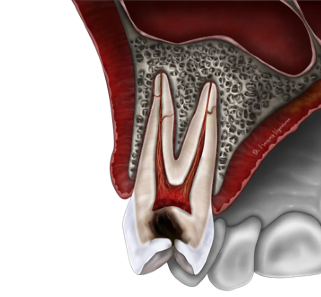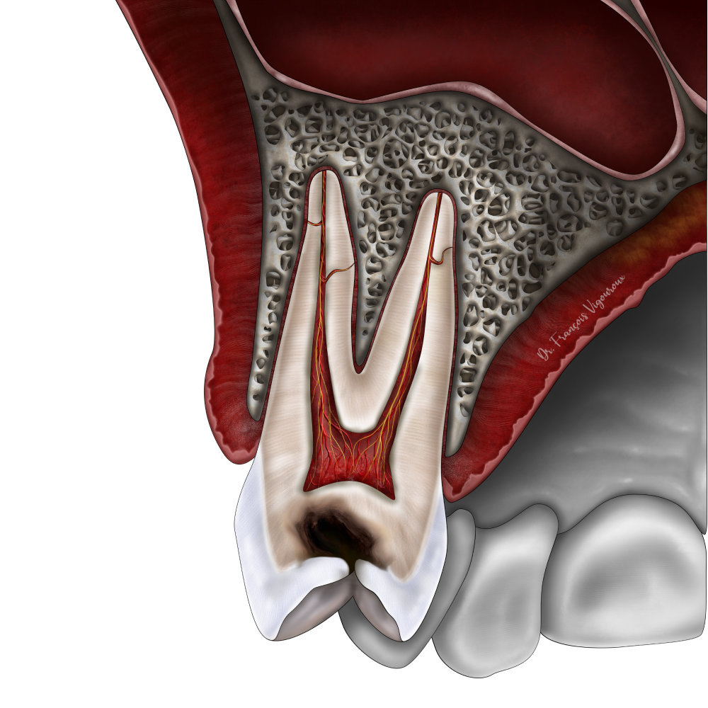 Lorsqu’une dent présente une carie profonde, la pulpe de la dent peut être inflammée de façon réversible (pulpite réversible). Il est alors possible de conserver la pulpe vivante.